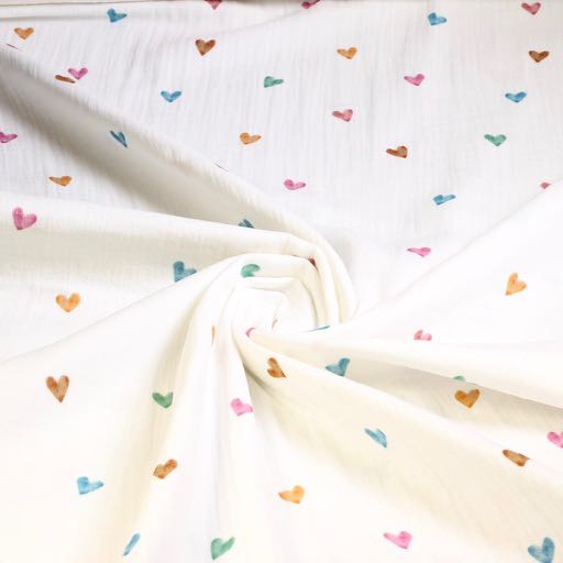 Hydrofiel Baby Katoen bedrukt Multicolor Hartjes