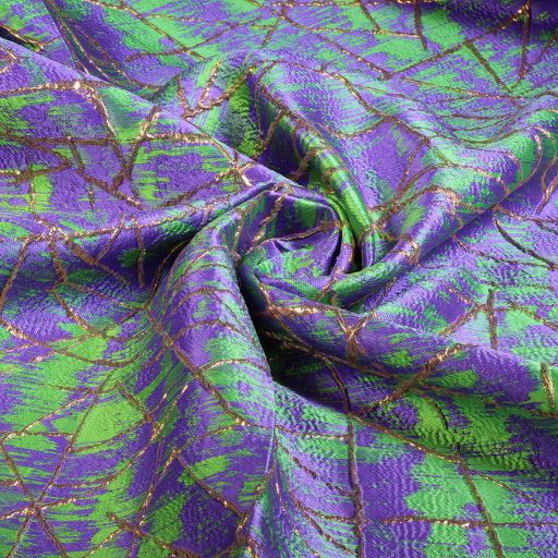 Jacquard is een stof met een ingeweven dessin welke aan beide kanten zichtbaar is. Deze stof is geschikt voor het maken van verschillende soorten kleding. Dit dessin is een hardloper voor carnaval en theater. De stof wijkt iets af van een gladde jacquard. Zoals u op de foto kunt zien hebben delen in de stof lurex strepen waardoor deze een nog wat rijkere uitstraling heeft. Dit design is bij Funkytex te verkrijgen in 3 verschillende kleurstellingen. Uitermate geschikt voor het maken van een kostuums , kledingstukken en voor mode - items .
