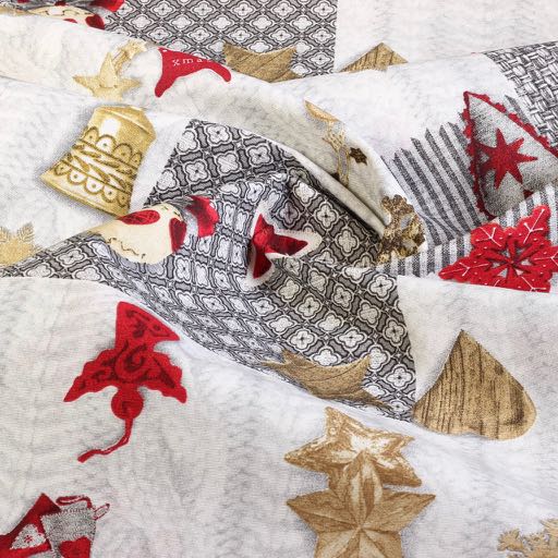 Deze ottoman geweven stof heeft een kleine rib structuur en is bedrukt met een mooi kerst design. Ideaal voor het aankleden voor u tafel of als decoratie zoals het maken van leuke kussens of u kerstboom.